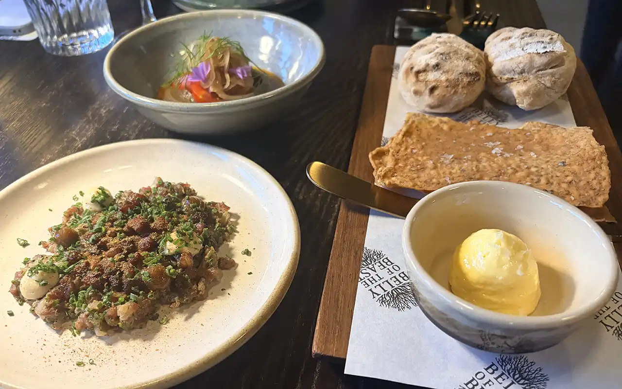 The name had done some work on me. Belly of the Beast. I pictured open fires, barbecue, big bold meat dishes, something closer to a steakhouse with attitude. Not quite.