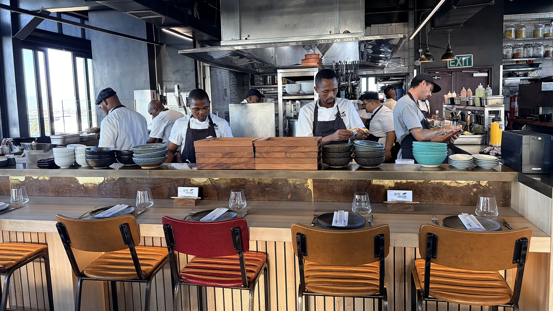 Set on the top floor of a silo at the Old Biscuit Mill in Woodstock, with views over Cape Town and Table Mountain, the restaurant serves dishes designed for sharing.